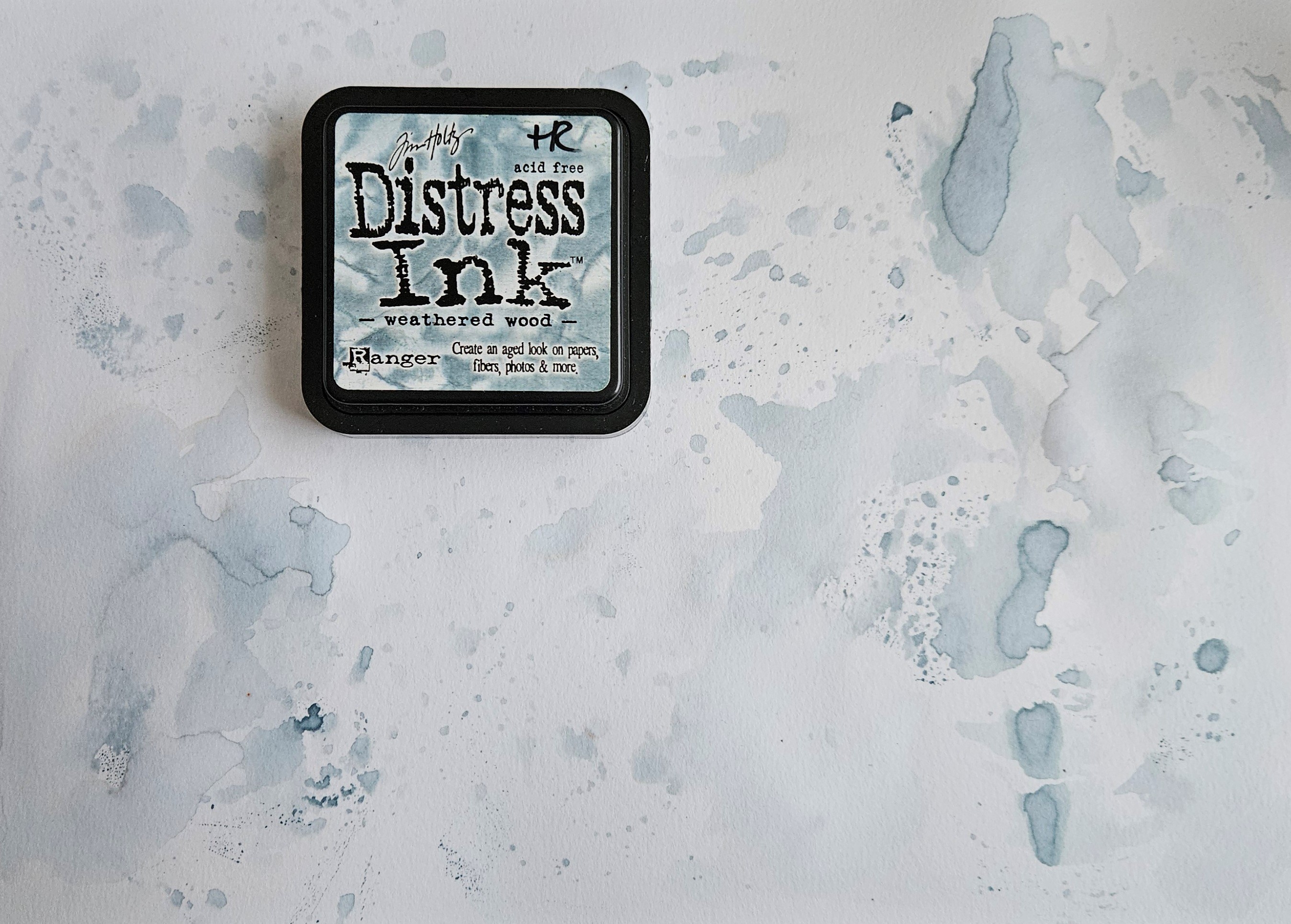 Op aquarelpapier (225 grams) heb ik met de Distress inkt vlekken gemaakt.