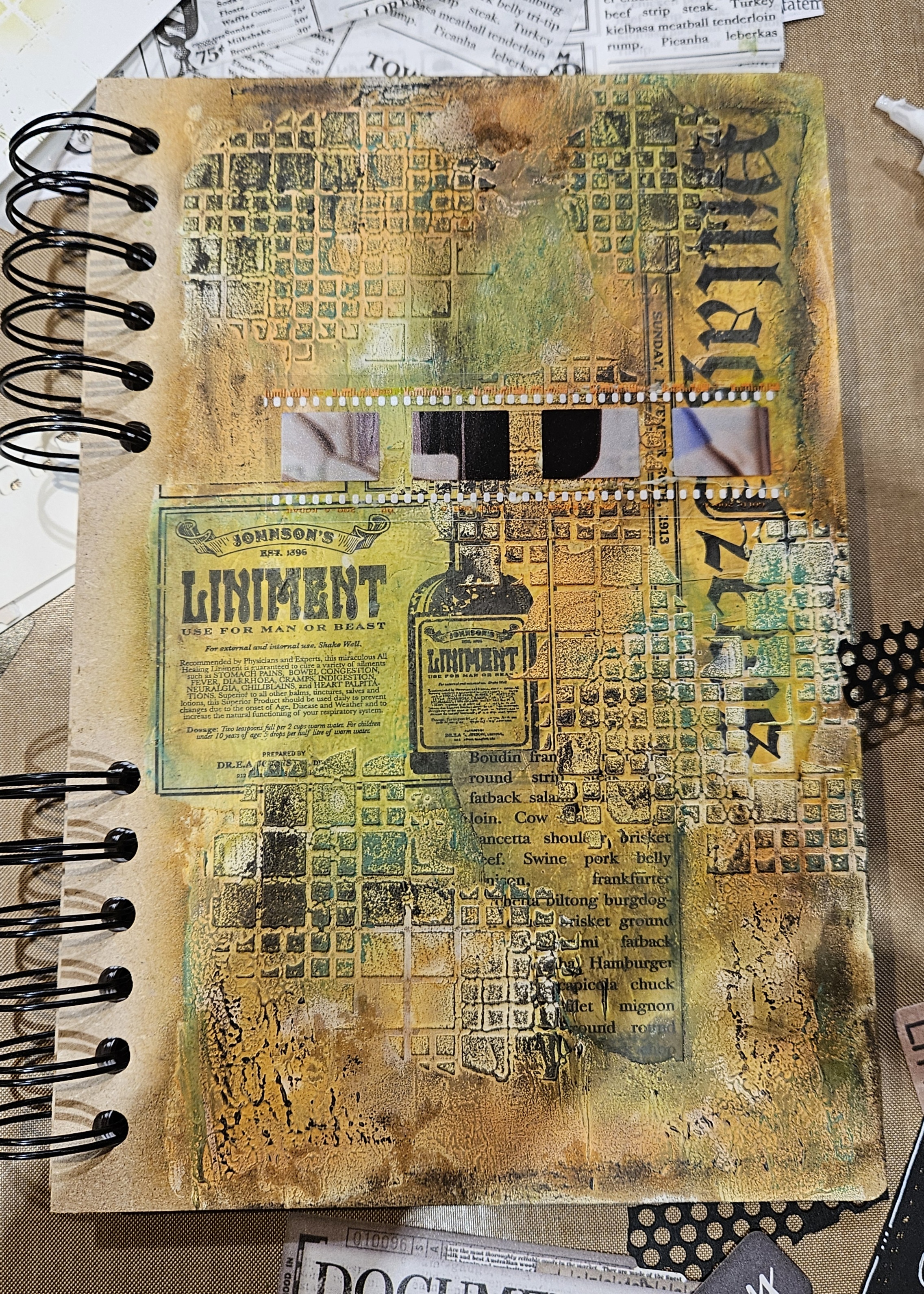 Toen de gesso droog was, heb ik de kaft met Oxide inkt bewerkt.